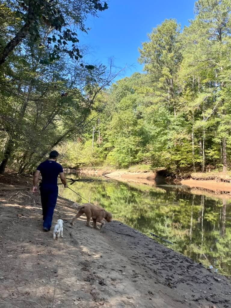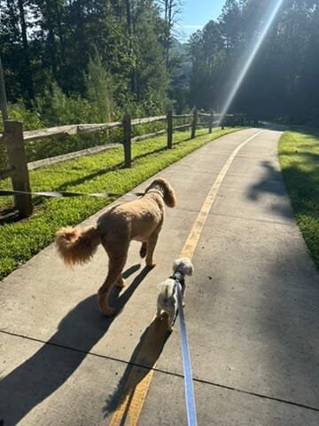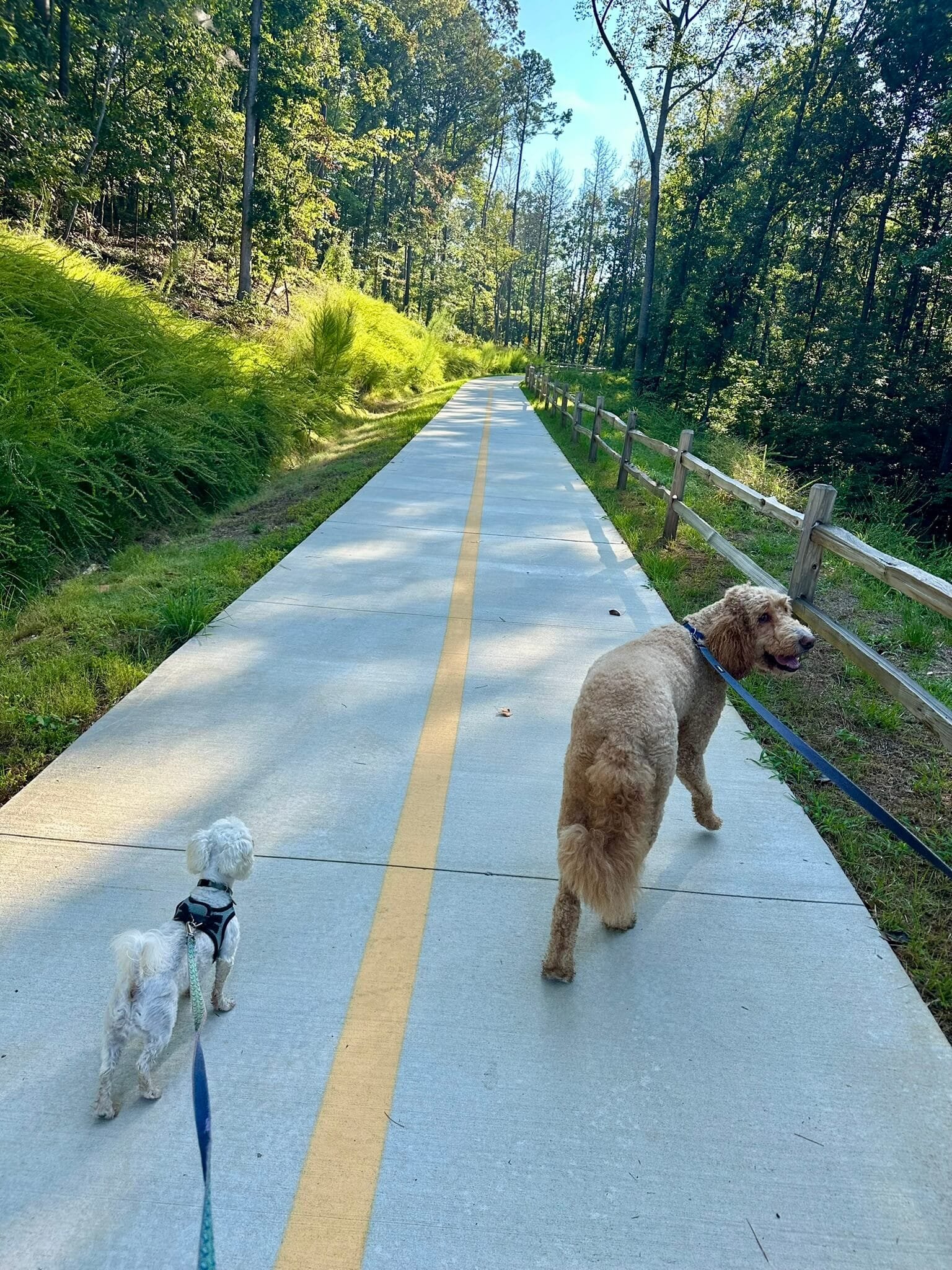 Looking for something a little more low-key? Check out local favorites like Allatoona Creek Trail, Patriot’s Park Loop, Turtle Back Loop, or Logan Farm Park Loop. These spots are go-tos for nearby dog parents who just want a relaxed walk with their pups on leash.